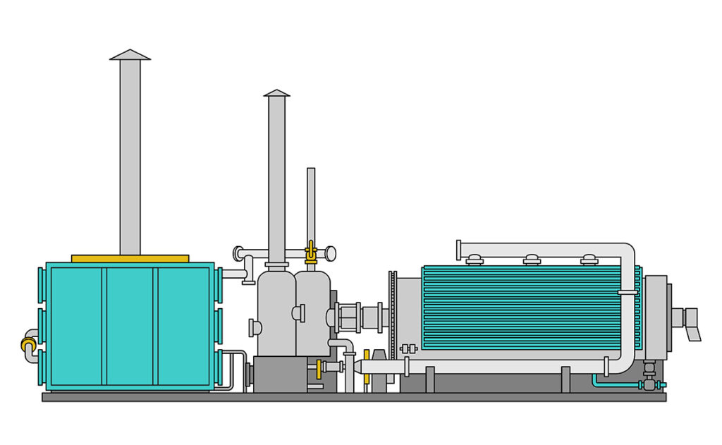 La produzione di energia tramite la pirogassificazione avviene con il contributo di un motore Stirling, che tramite la combinazione di gas ad alta temperatura e acqua di raffreddamento produce energia elettrica e converte il calore in energia termica usando proprio l’acqua come vettore.